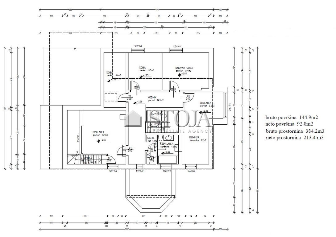The house can also function as a two-apartment house with a commercial part and separate entrances or even as a three-apartment house with separate entrances.