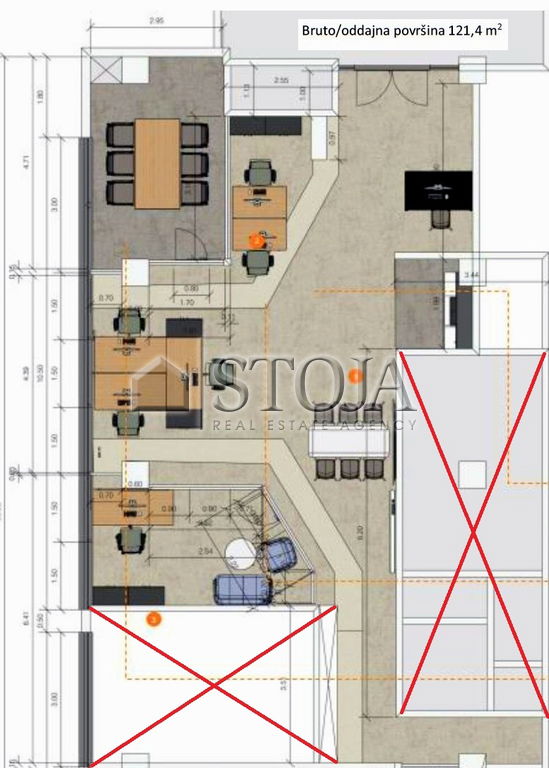 In addition to the offices, it is possible to rent 4 parking spaces, €100 + VAT/month for the garage, and besides the listed parking spaces, additional parking spaces can be rented, located in the adjacent public parking garage.