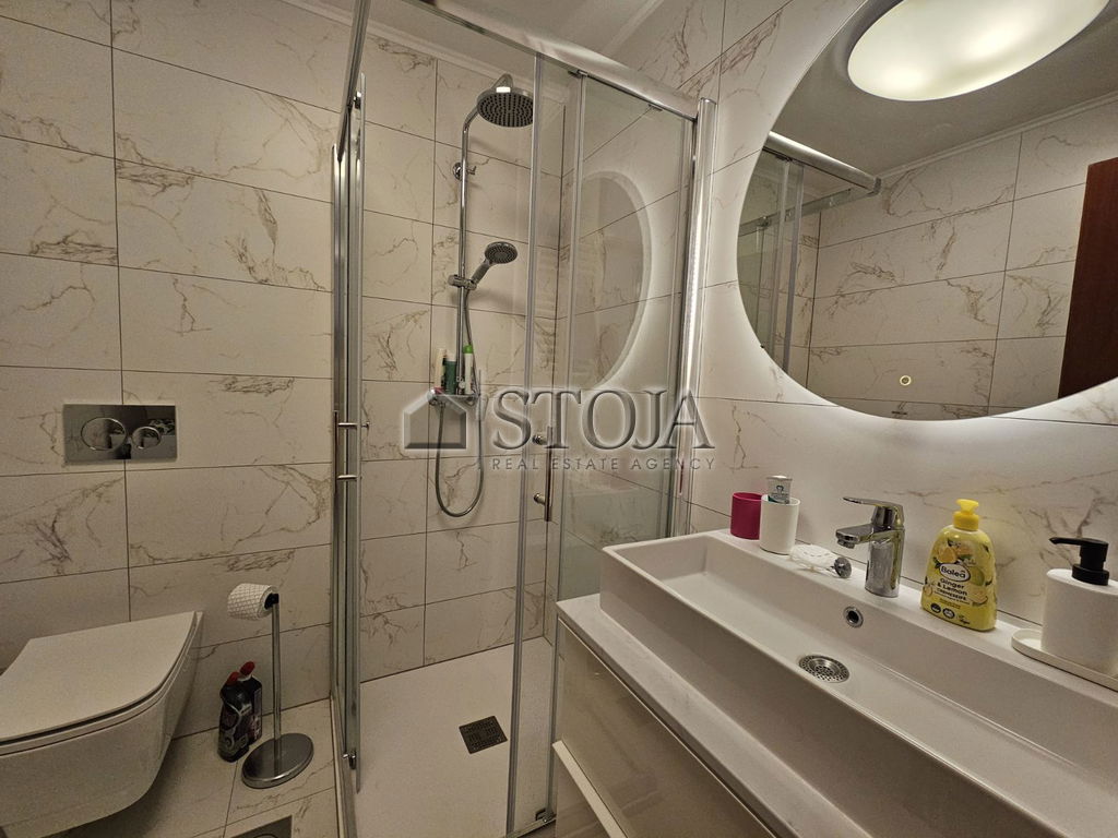 Bathroom with shower – modernly arranged bathroom.