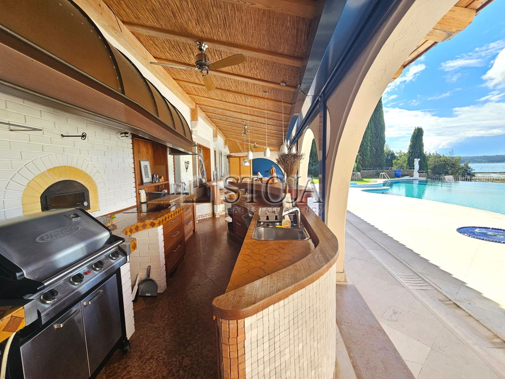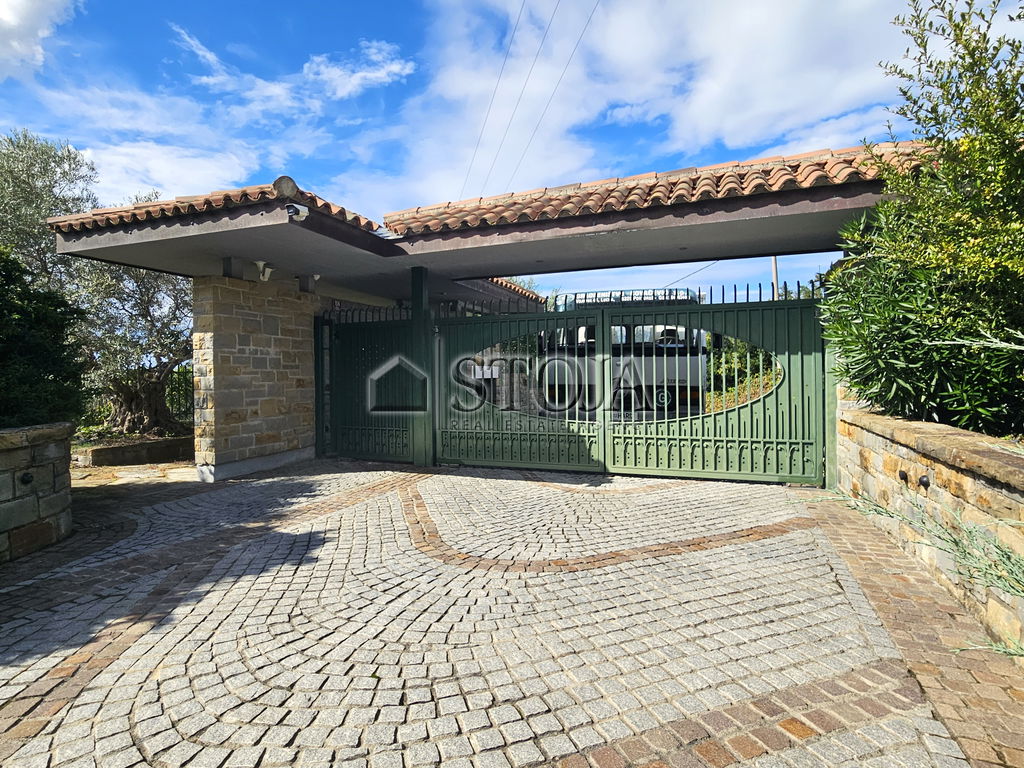 The villa, built in 1987 and fully renovated in 2004, extends over 560 m² of living space on a 2,350 m² private plot, surrounded by lush greenery, cypresses, and total privacy.