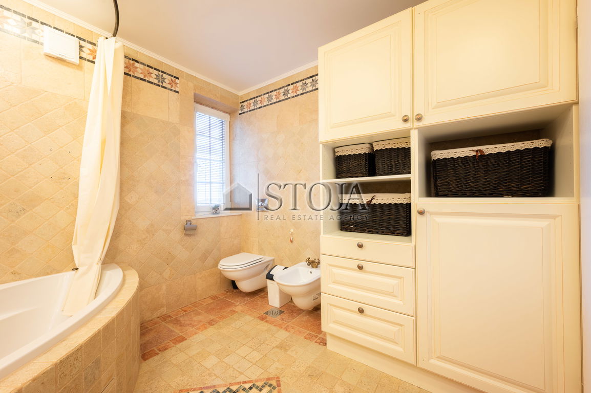 Hiša je arhitekturno zasnovana s poudarkom na funkcionalnosti in udobju. Vgrajeno ima talno gretje, z možnostjo hlajenja, za ogrevanje in pripravo tople vode pa skrbijo sončni kolektorji ter toplotna črpalka, kar omogoča energetsko učinkovito bivanje. Dodatno udobje nudi klima, sproščanje pa omogoča jacuzzi ter velika terasa ter vrt s prelepimi razgledi na okolico.