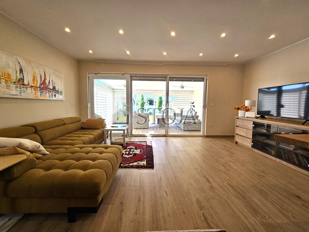 89,5m2 Stanovanjske površine, 20m2 zimskega vrta + 165,35m2 vrta: Prostorno stanovanje s številnimi možnostmi za uživanje na prostem in druženje.