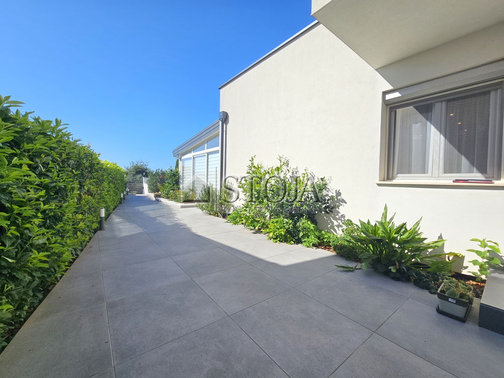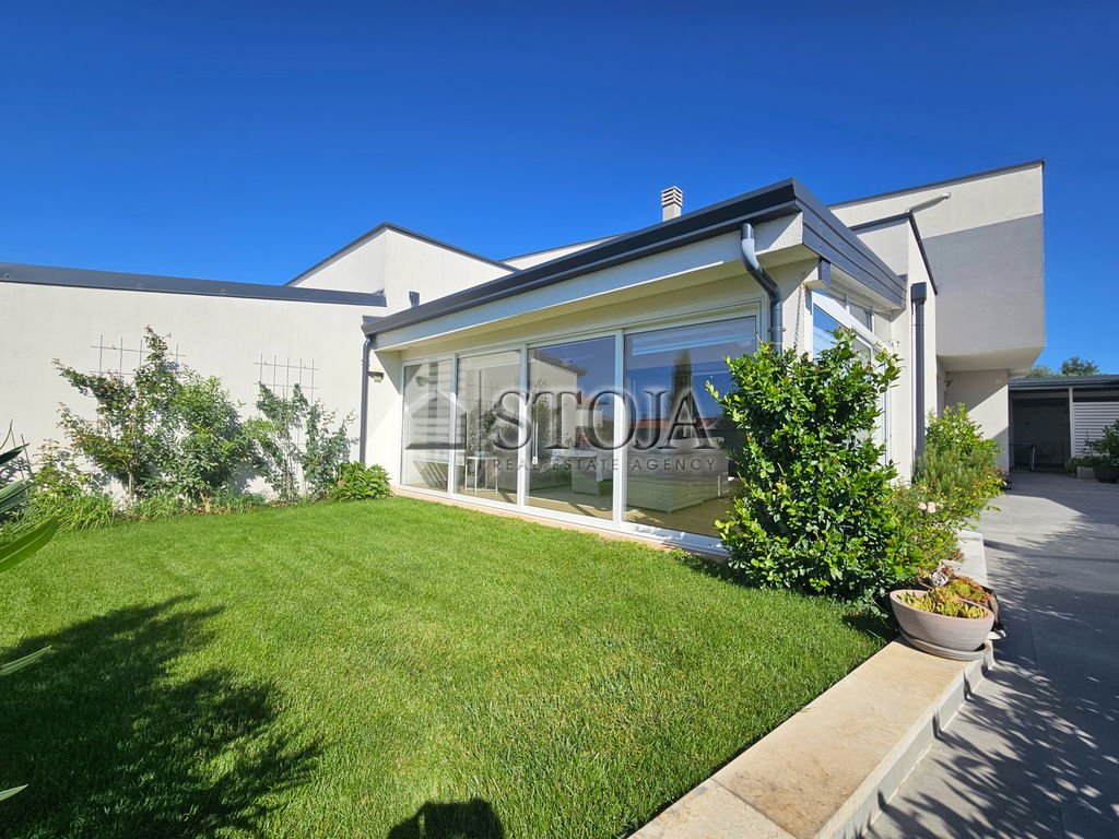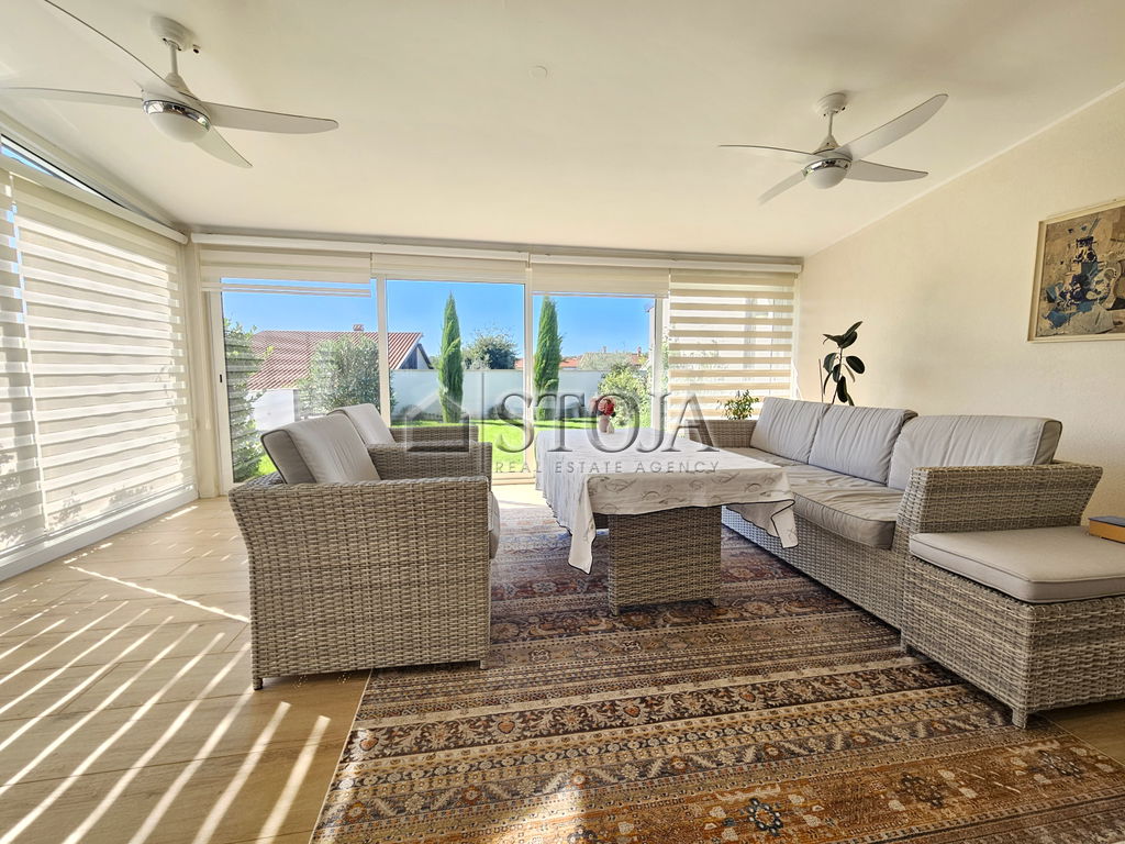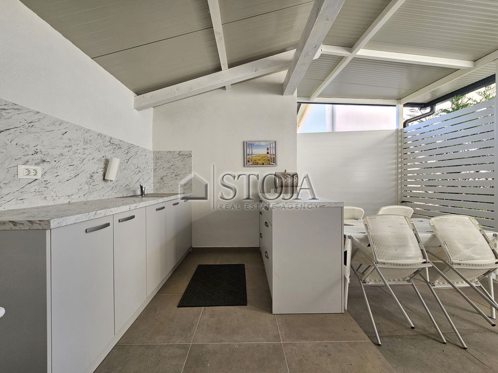 Stanovanje s 89,5 m2 bivalne površine, ponuja velik dnevno-bivalni prostor s kuhinjo in izhodom na zimski vrt v velikosti 20m2 iz katerega dostopamo do atrija. V stanovanju se nahajajo še 3 spalnice, kopalnica in ločen WC. Na delu dvorišča je poleg zimskega vrta še dodaten pokrit prostor za druženje z letno kuhinjo in shrambo. Pred stavbo je tudi lastniško parkirišče, stanovanju pripadata dve parkirni mesti. Stanovanje se nahaja v 3-stanovanjski stavbi. Lokacija stavbe je v neposredni bližini Umaga, oddaljeno 5 min vožnje od trgovine Spar, kar vam omogoča hiter dostop do vse mestne infrastrukture!