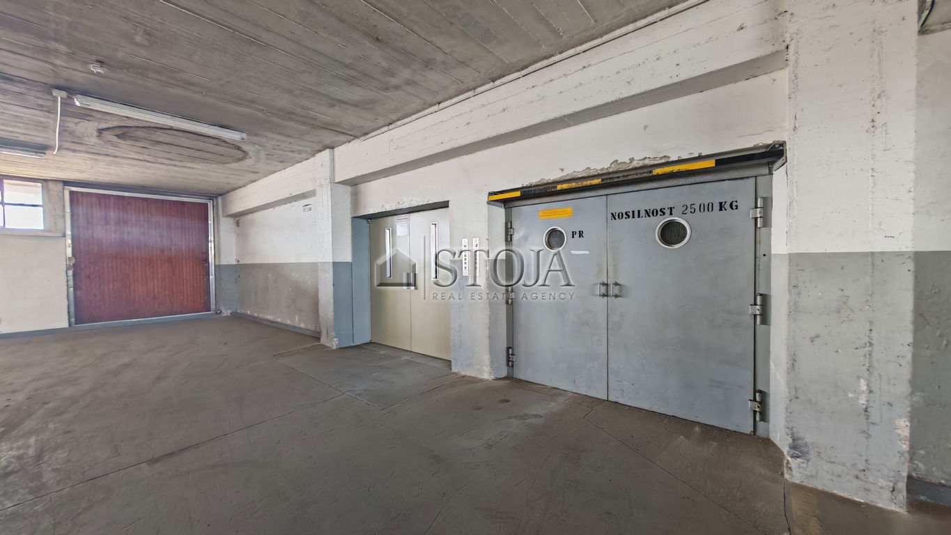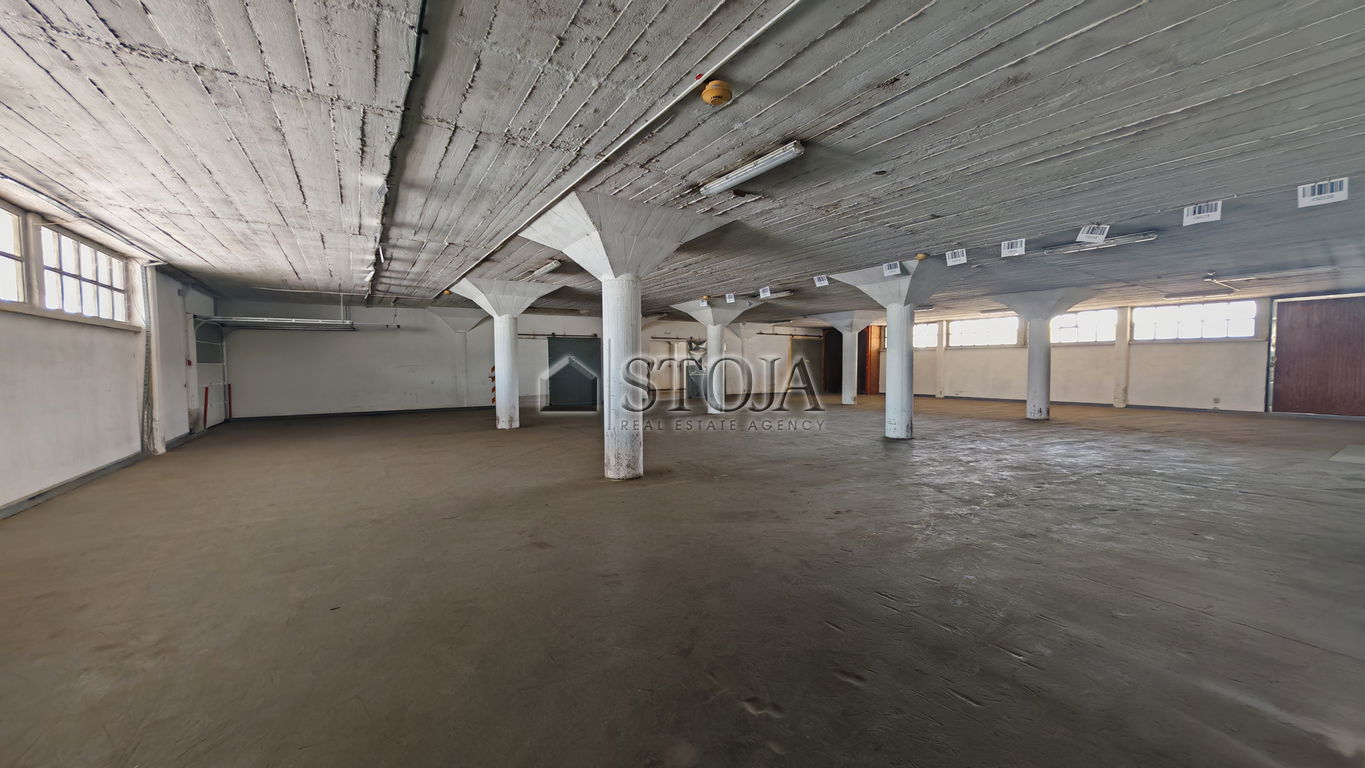 Pritličje (1.194,81 m²): prostorna dvorana z neposrednim dostopom skozi glavni vhod in prek nakladalnih ramp na sprednji in zadnji strani objekta. Vključuje sprejem blaga, garderobe in sanitarije.