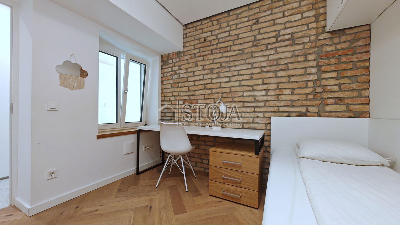 The apartment also includes a private storage room (2.5 m²) on the same floor as the apartment, as well as a wood storage room (5.3 m²), and the use of one parking space, both in the shared courtyard. Additionally, the apartment has a 60% ownership share of the accessible balcony (total 37.1 m²), where residents can place tables and chairs. The apartment also includes part of an unfinished attic (51.8 m² gross and 41.48 m² net), on which it would be possible (once legalized) to create an additional residential unit or convert the existing apartment into a duplex.