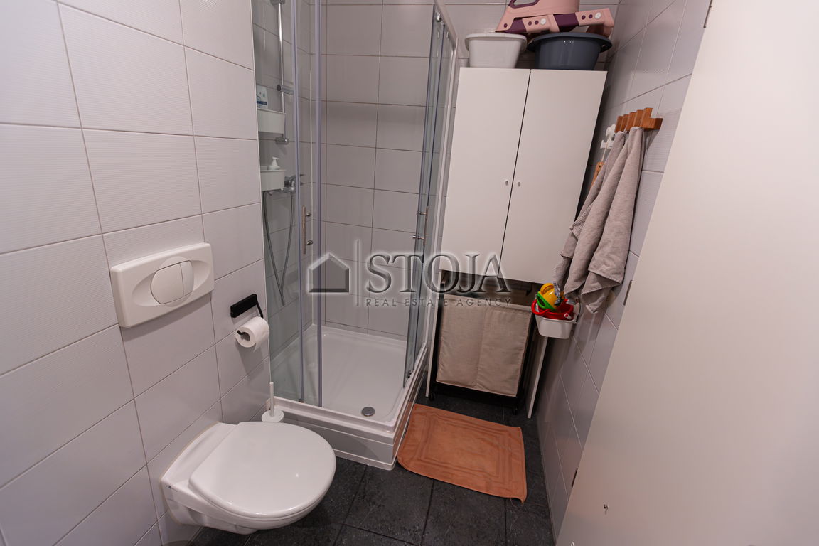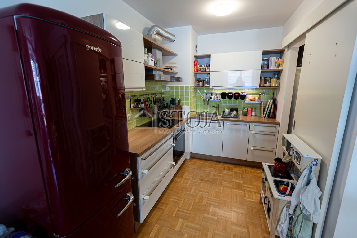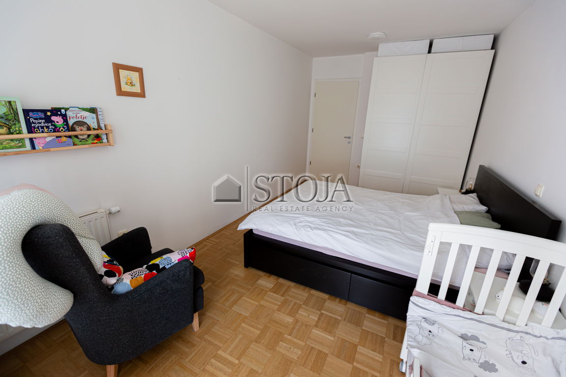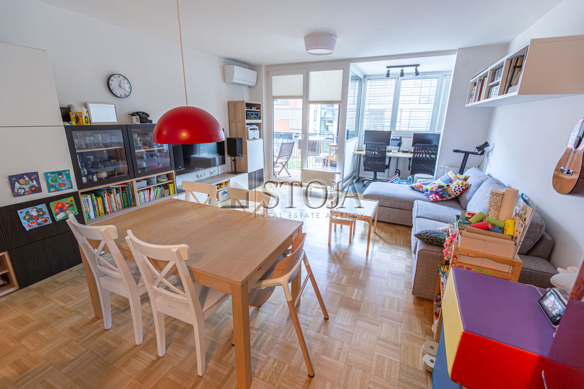 Additional advantages of the property include covered parking and an elevator in the building, ensuring easy access and greater comfort. The apartment is equipped with an air conditioning system, and the energy class B2 guarantees good energy efficiency. The apartment is heated by the district heating system – radiators have a smart thermostatic valve with the option to set heating times. The central city location allows direct proximity to all important urban amenities, while the apartment is situated in a quiet location near nature, providing a pleasant and relaxed living environment.