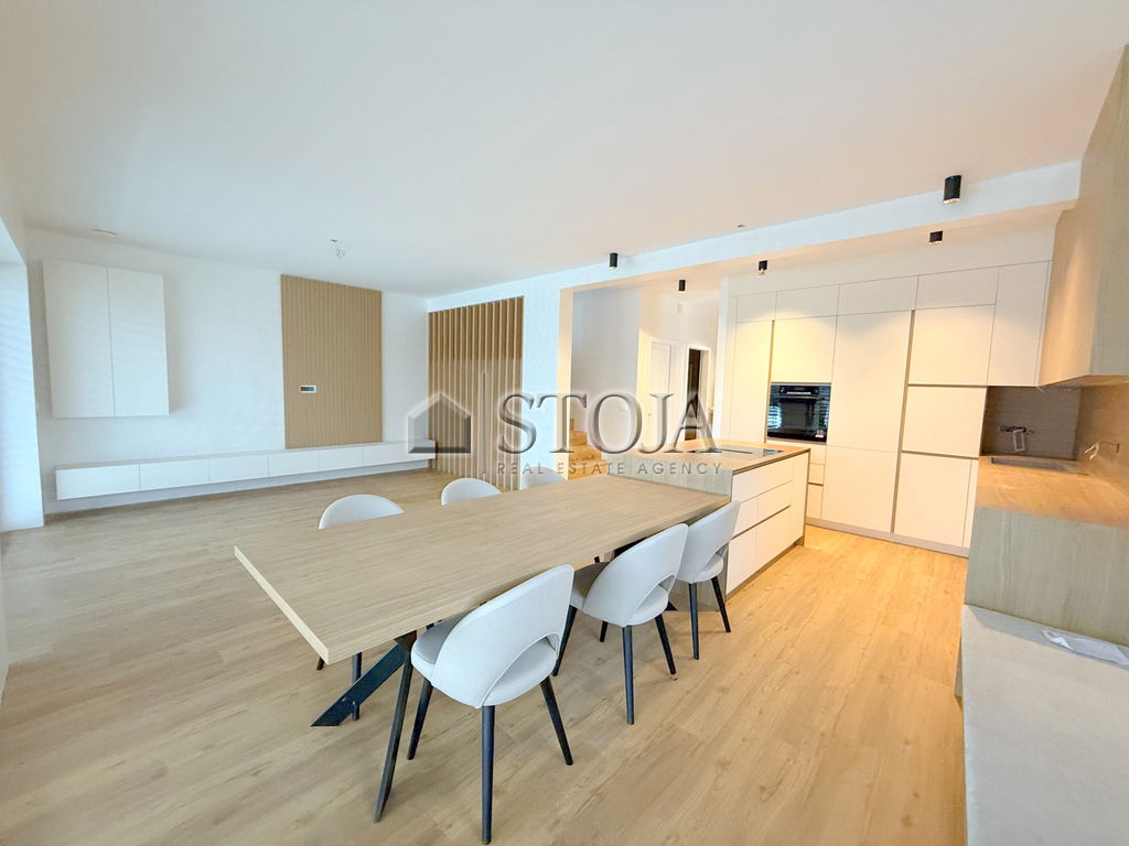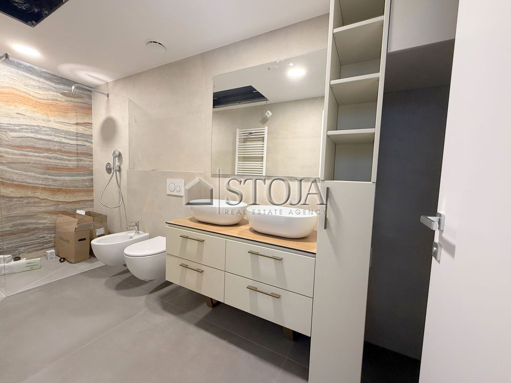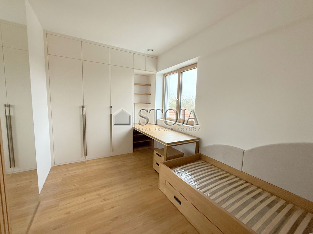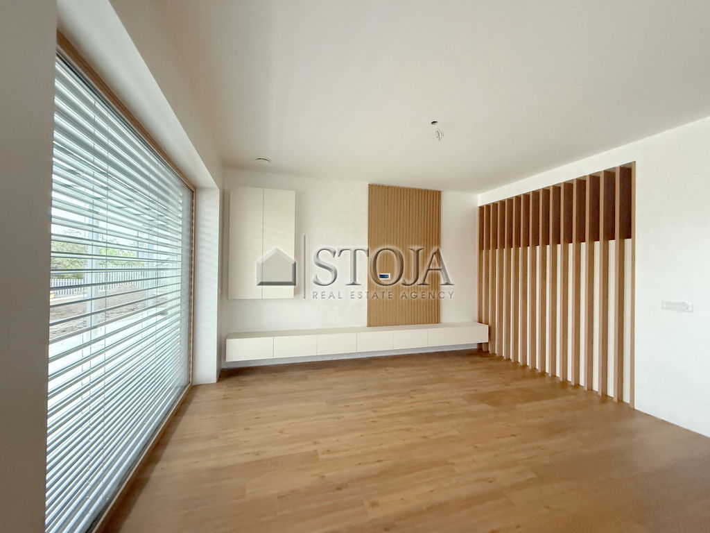 It spreads over 119.6 m2 of usable area, with the ground floor offering a spacious entrance hall with built-in wardrobes, an elegant bathroom, a storage room, and a beautiful kitchen with dining and living room, from which doors open onto a covered terrace and a 66 m² atrium – ideal for socializing or complete outdoor tranquility.