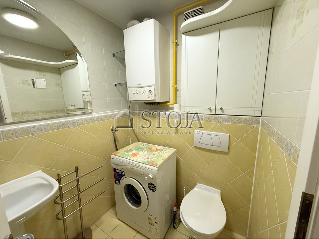 Razporeditev prostorov zajema prostorno spalnico, kopalnico ter shrambo. Stanovanje je opremljeno s kuhinjo z aparati, pralnim strojem in posteljo, kar omogoča takojšnjo vselitev brez dodatnih stroškov opremljanja. Ogrevanje je urejeno na plin, kar omogoča učinkovito in ekonomično ogrevanje v hladnejših mesecih.