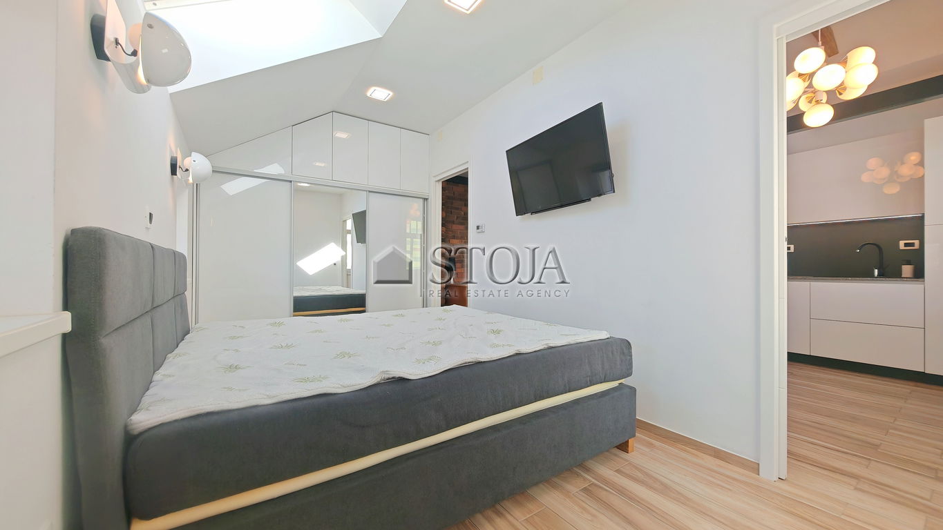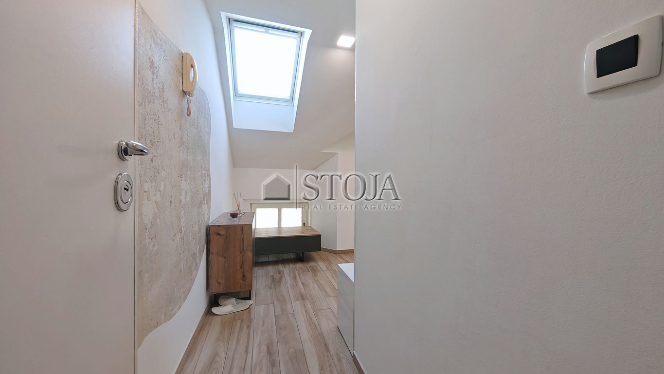 Preberite večProdamo v celoti adaptirano mansardno stanovanje v prenovljeni meščanski hiši brez dvigala in z le 9-stanovanjskimi enotami ter lastniškim parkirnim mestom (neto 41,8 m2).