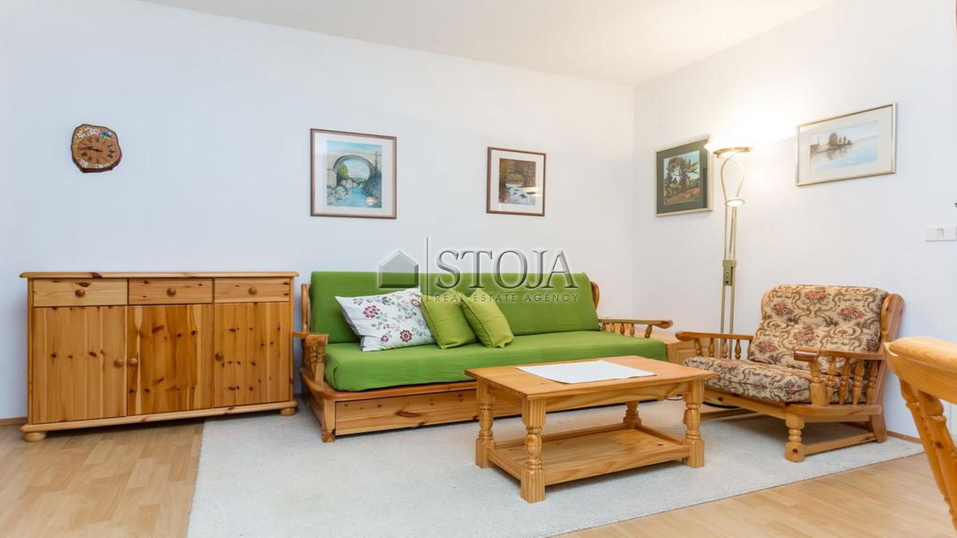 Stanovanje je popolnoma opremljeno – vključuje kuhinjo z aparati, pomivalni in pralni stroj, televizor, posteljo in osnovno pohištvo.