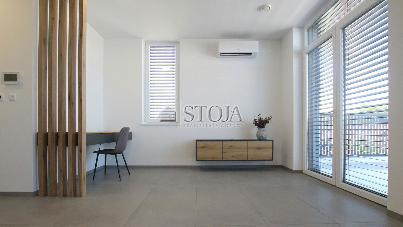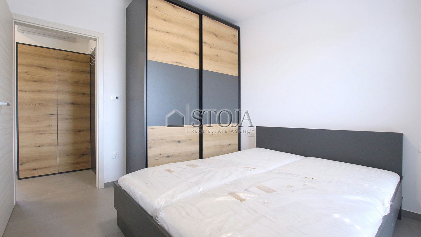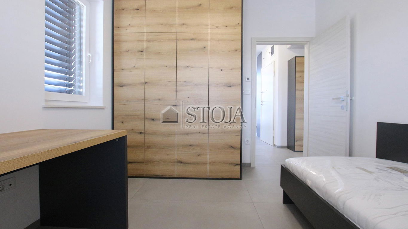 Stanovanje se nahaja v 2. nadstropju novozgrajenega dvojčka s tremi stanovanji (brez dvigala). Stanovanje je funkcionalno razporejeno in obsega: hodnik z vgradno omaro, glavna spalnica, manjša soba, velik odprt dnevni prostor z moderno kuhinjo in mizo in izhodom na sončno teraso z zahodno lego ter kopalnica s tušem.