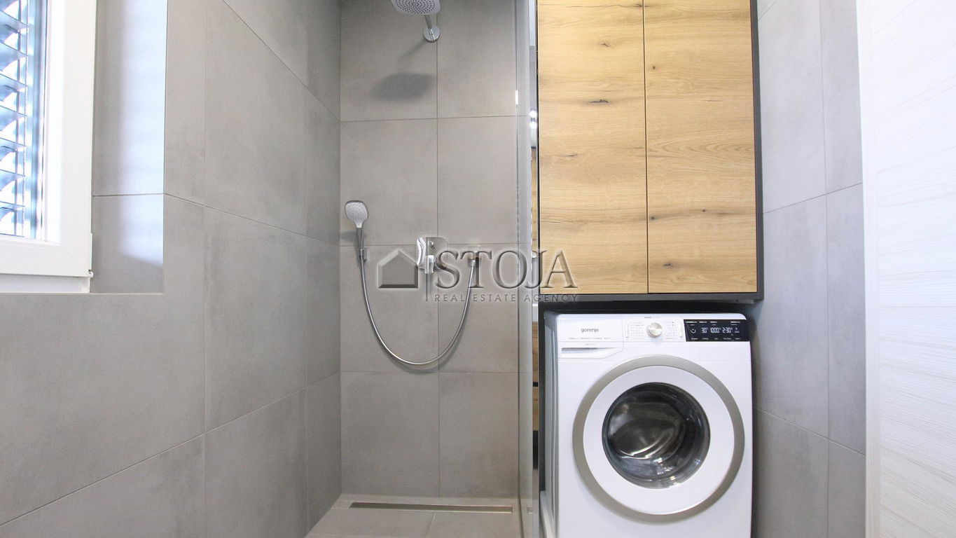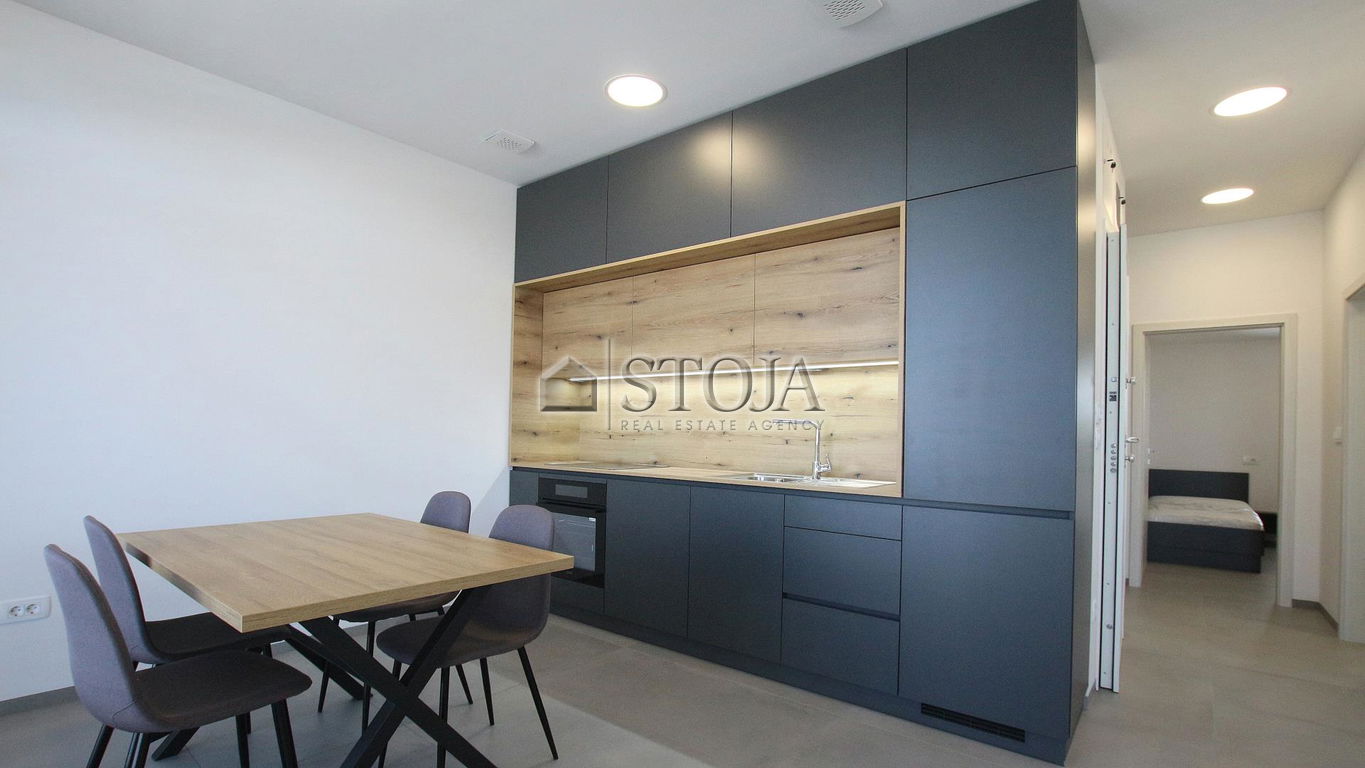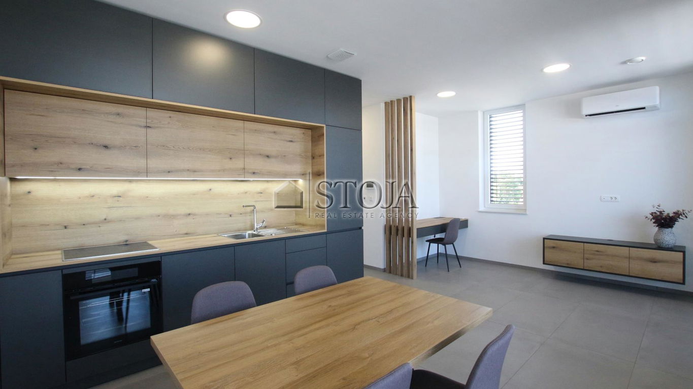 Stanovanje se nahaja v 2. nadstropju novozgrajenega dvojčka s tremi stanovanji (brez dvigala). Stanovanje je funkcionalno razporejeno in obsega: hodnik z vgradno omaro, glavna spalnica, manjša soba, velik odprt dnevni prostor z moderno kuhinjo in mizo in izhodom na sončno teraso z zahodno lego ter kopalnica s tušem.