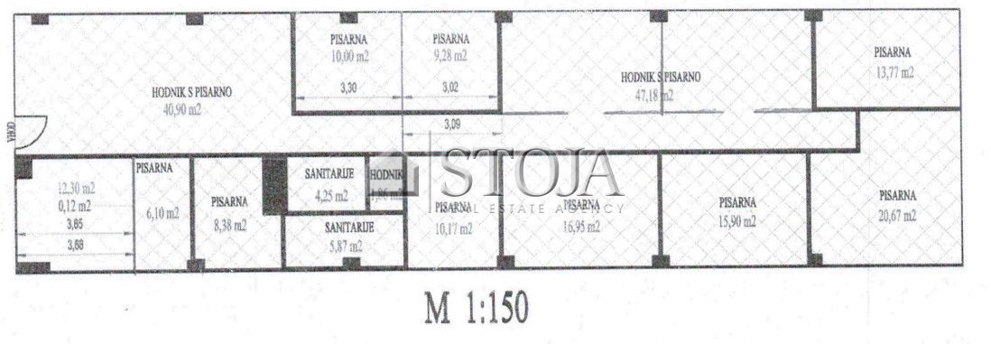 večji sprejemni prostor, ki trenutno deluje kot odprta pisarna (cca 50 m²),
