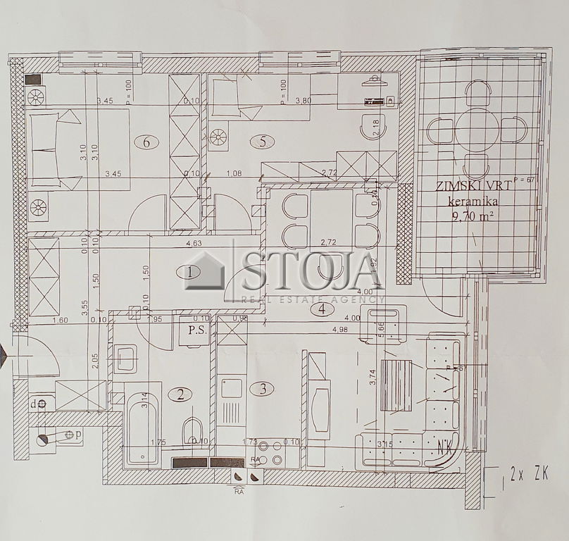 Preberite večProdamo moderno zasnovano stanovanje z zimskim vrtom (9,7 m2) na dostopni in razgledni lokaciji. Vsa infrastruktura je dostopna peš (šola, vrtec, pošta, banka, trgovina, itd.).