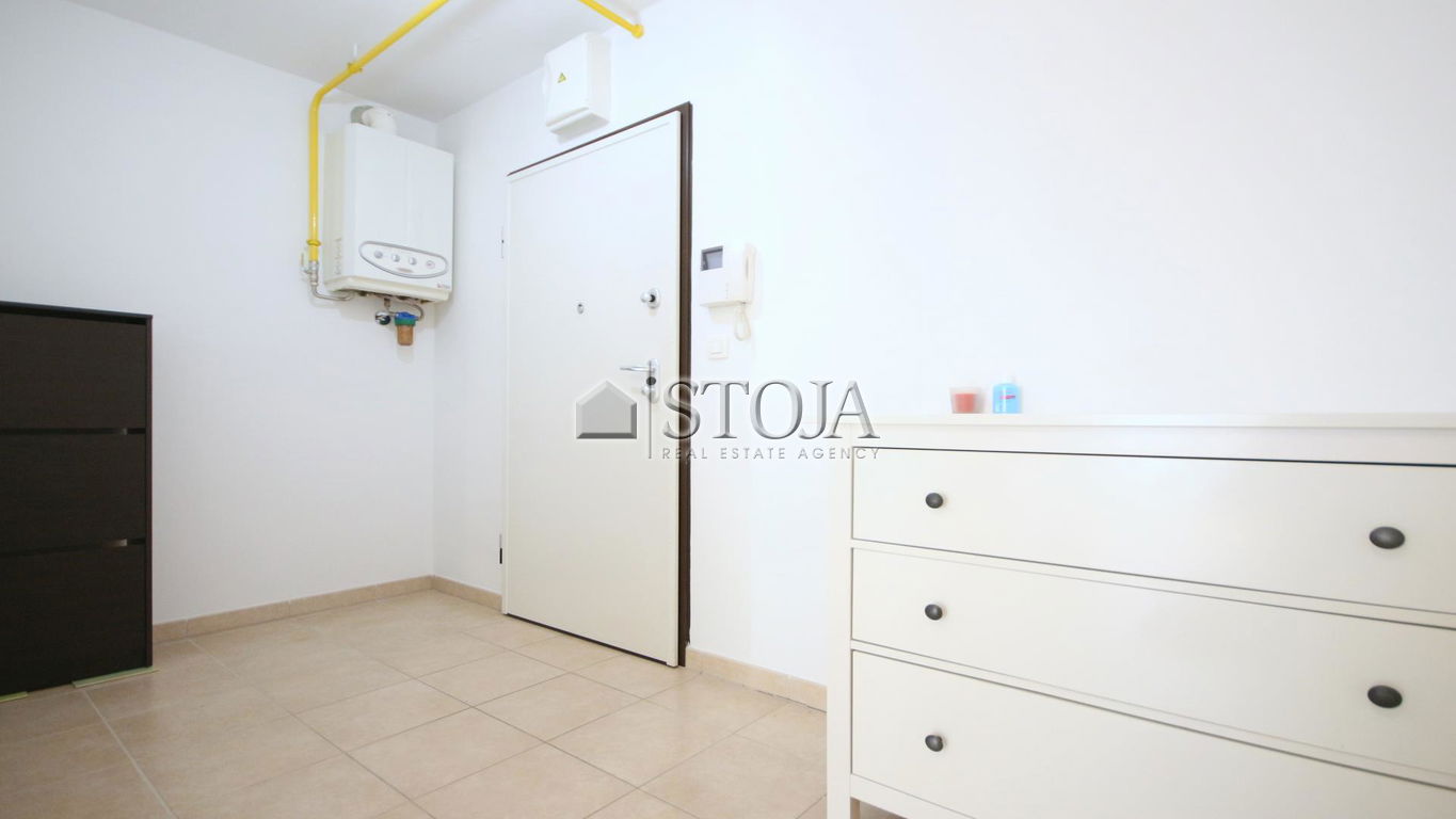 Funkcionalna razporeditev prostorov obsega predprostor z garderobo (10,2 m2), kopalnico (5,7 m2), glavno spalnico (10,6 m2), mladinsko sobo (9,3 m2) ter velik dnevno bivalni prostor (17,8 m2) s kuhinjo in jedilnico z izhodom na zimski vrt. Pripada pa mu tudi kletna shramba (4.5 m2).