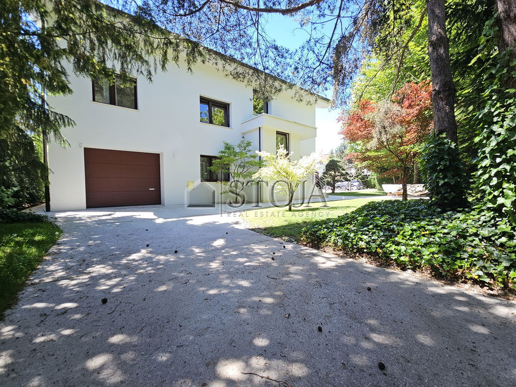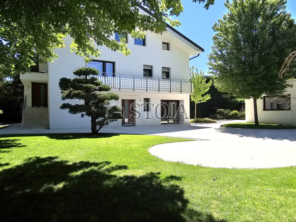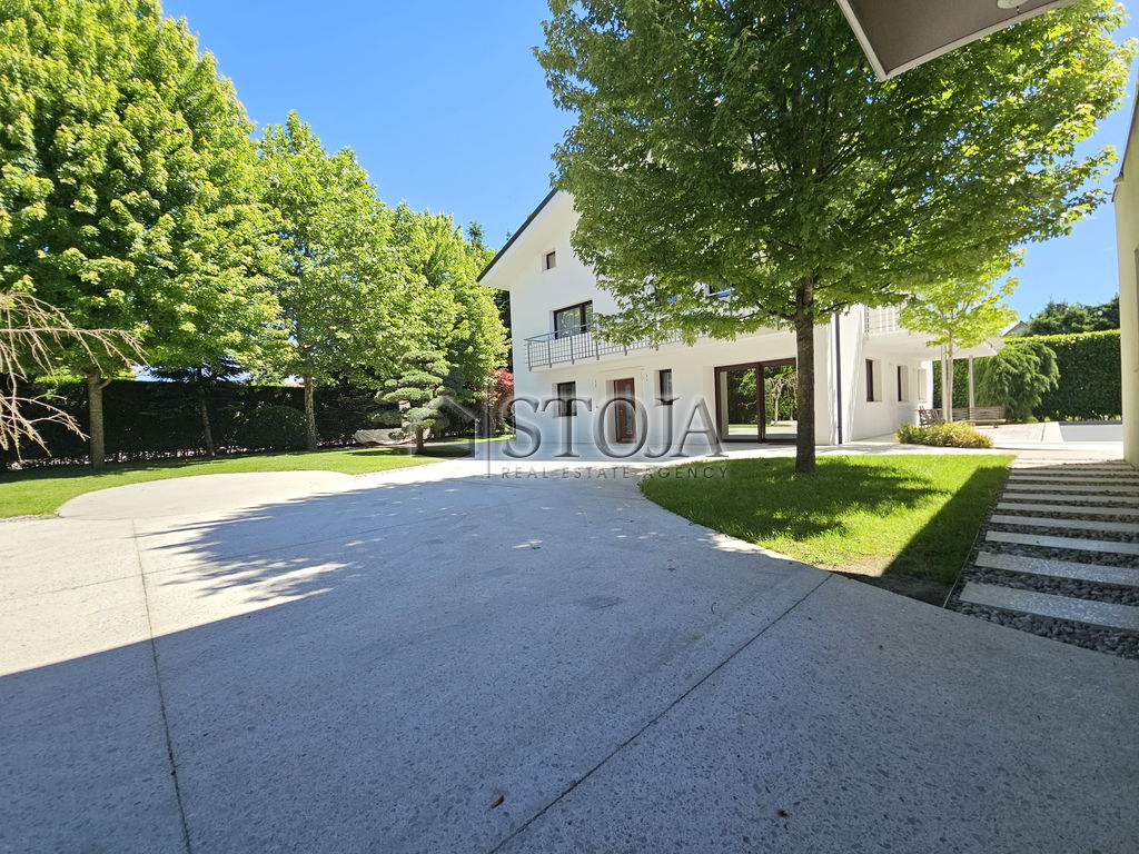 Zaradi povezave pritličnih površin z izjemno lepo urejenim in prostornim vrtom je hiša idealna za organizacijo večjih sprejemov in dogodkov. Vse utrjene površine okoli objektov so zaključene v brušenem betonu.