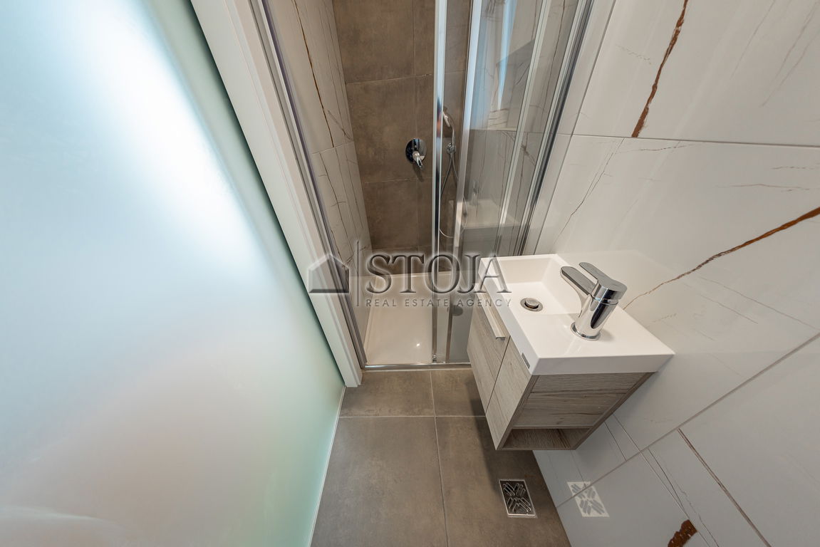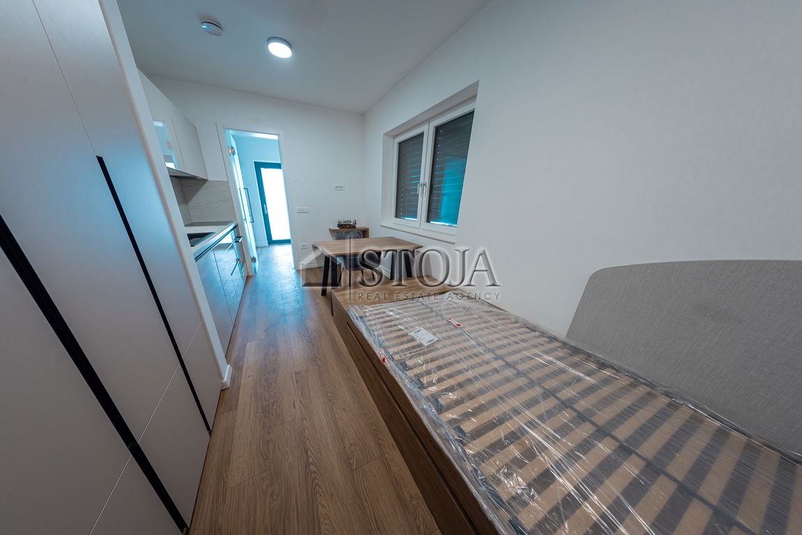 Garsonjera se nahaja v pritličju in je idealna izbira za posameznika ali par. Prostor je popolnoma opremljen, z izjemno premišljenim pohištvom po meri, ki omogoča maksimalni izkoristek kvadrature brez kompromisov pri udobju.