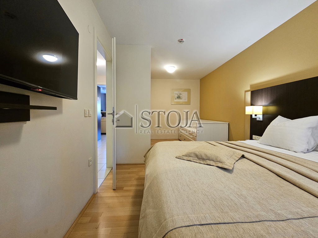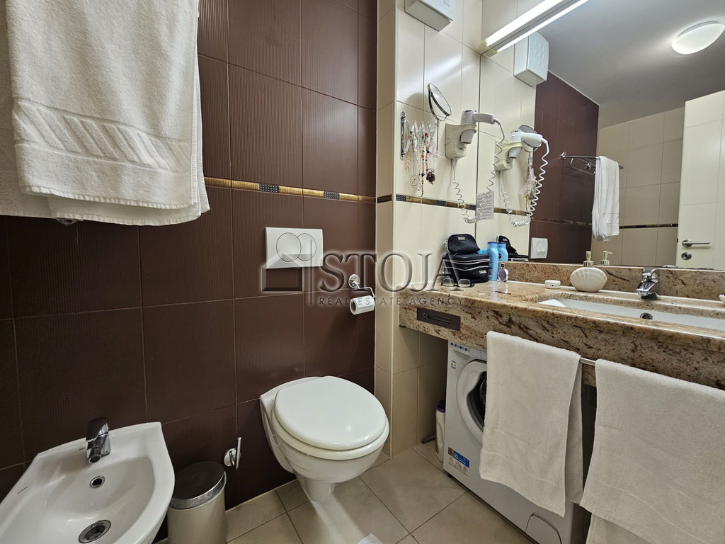 Stanovanje ima 65,5m2 bivalne površine in se ponaša z prostorno spalnico, dvema kopalnicama, velikim dnevno bivalnim prostorom s kuhinjo in z izhodom na ložo v velikosti 6,9m2, parkirnim mestom z shrambo v garaži ter dodatnim parkirnim mestom zunaj.