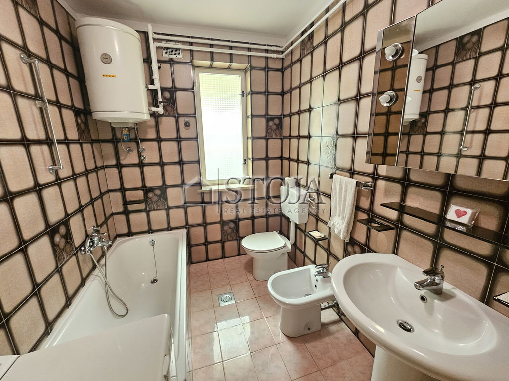 Predstavljamo vam prostorno samostojno hišo v osrčju Portoroža, ki je pripravljena za najem večjega števila oseb. nepremičnina s skupno biruto površino 263.1 m2 ponuja obilico prostora in udobja, ki bo zadovoljilo tudi najbolj zahtevne najemnike. Hiša je dvostanovanjska, spodnje stanovanje je 2,5 sobno, z 47,3m2 bivalne površine in 24,9m2 terase. Zgornje stanovanje je 3,5 sobno, s skupno površino 157,1m2, od tega 96,1m2 bivalne in 61m2 terase. Na voljo je tudi garaža za 2 avtomobila. Ogrevanje je centralno na olje. Hiša je bila letos tudi deloma prenovljena (nova streha, obnovljena keramika na terasah, deloma pobeljena). Hiša ima čudovito jugozahodno lego in pogled na morje!