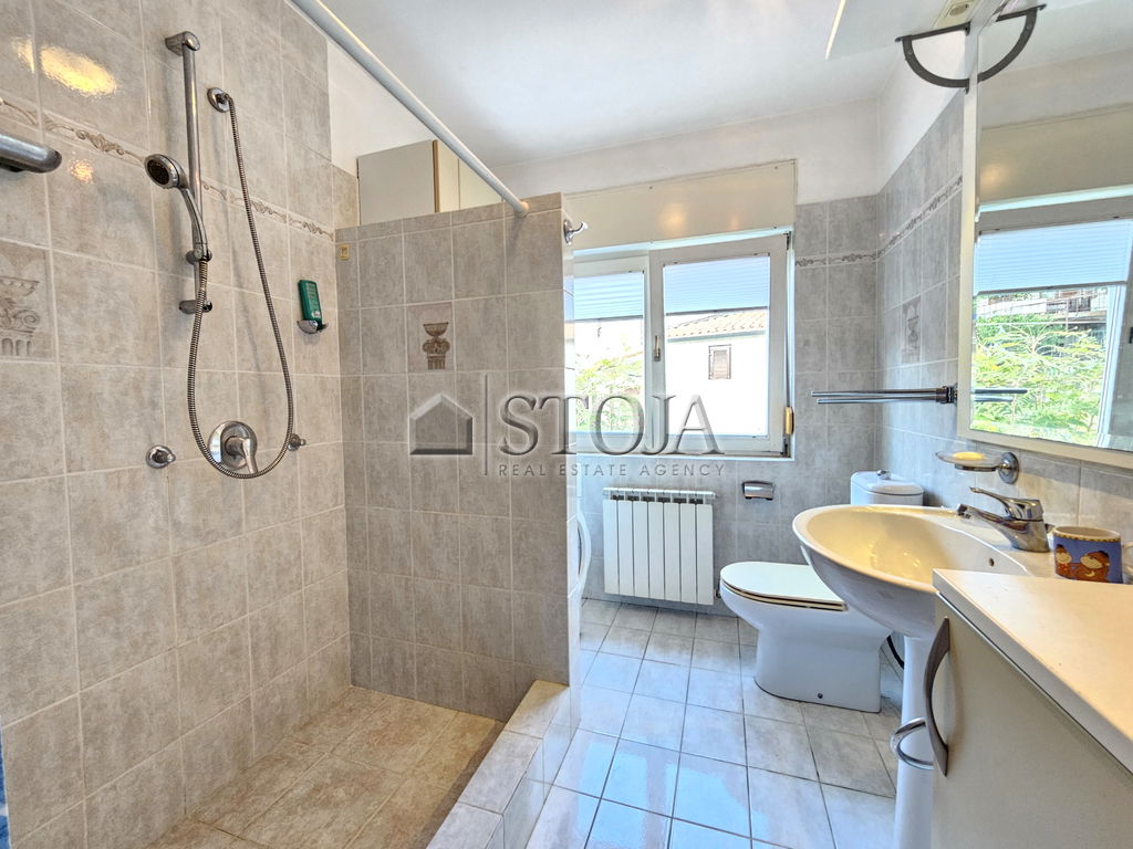 V pritličju in nadstropju se nahaja 4-sobno duplex stanovanje,v katerega vstopimo v predprostor, poleg tega pa obsega še jedilnico, kuhinjo, kopalnico in ogromno dnevno sobo z izhodom na večjo teraso in dvorišče in eno spalnico. V nadstropju to stanovanje obsega še dve spalnici s pogledi na morje in kopalnico. V drugem delu hiše, se nahaja ločeno dvosobno stanovanje s kuhinjo, dnevno-bivalnim prostorom in prostorno spalnico.