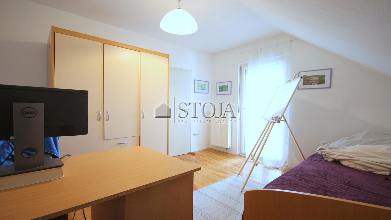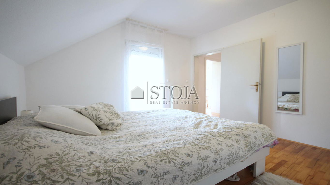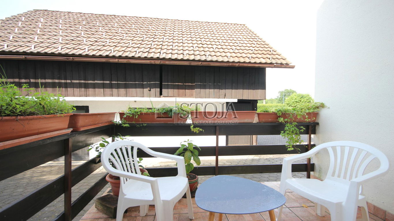 V mansardi je kopalnica in dve spalnici z izhodoma na ločena balkona.