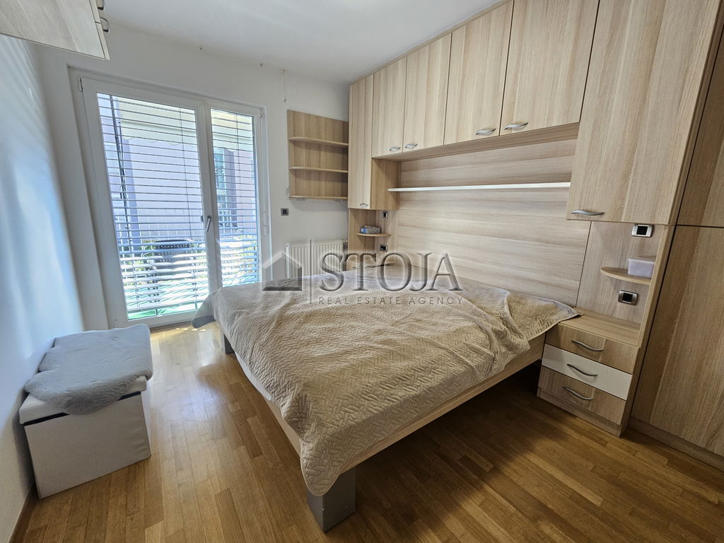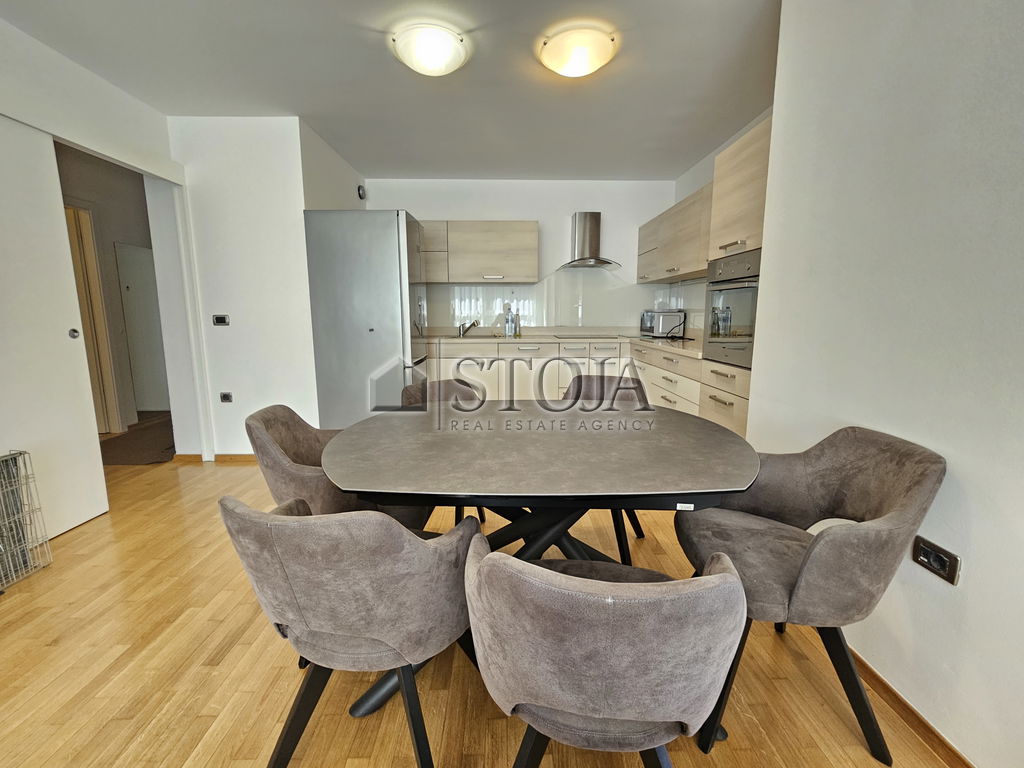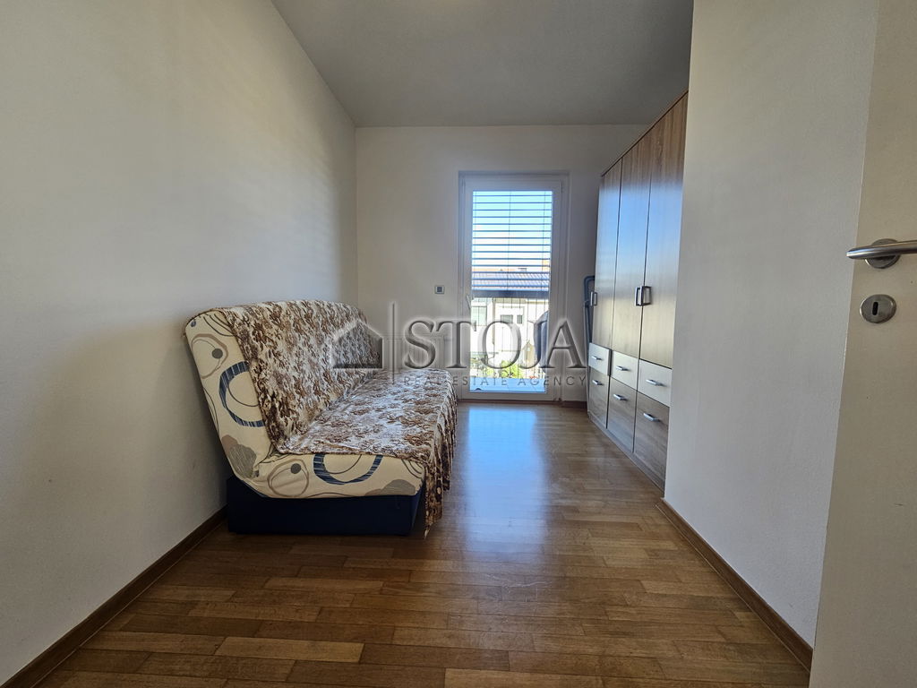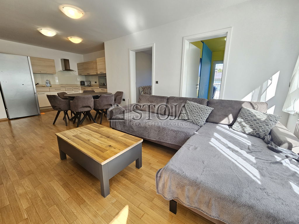 Stanovanje se nahaja v urejenem bloku z dvigalom z orientacijo jugovzhod. Stanovanje z zelo funkcinalnim tlorisom je v 1. nadstropju in obsega 83,5m2 bruto površine, od tega 69,6m2 bivalne, 10,4m2 skupno od ene lože in enega balkona in 3,5 m2 shrambe v kleti. Izhod na ložo je možen iz dnevnobivalnega prostora in iz glavne spalnice. Na drug balkon je izhod iz obeh manjših spalnic. Okna in vhodna vrata so kvalitetna, nameščena so tudi senčila. Stanovanje je opremljeno kot je razvidno na slikah. Parkiranje je možno na dveh lastniških parkiriščih v garaži pod objektom. V stavbi sta tudi dve kolesarnici.