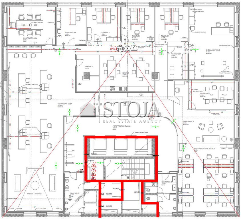 - pisarna za 8-10 delavnih mest ter predprostor za tajništvo ali shranjevanje