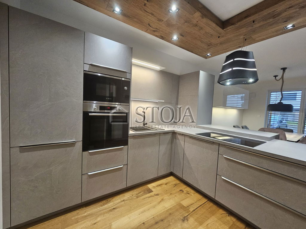 Kuhinja z dnevnim delom in izhodom na zasebni atrij, spalnica ter kopalnica.