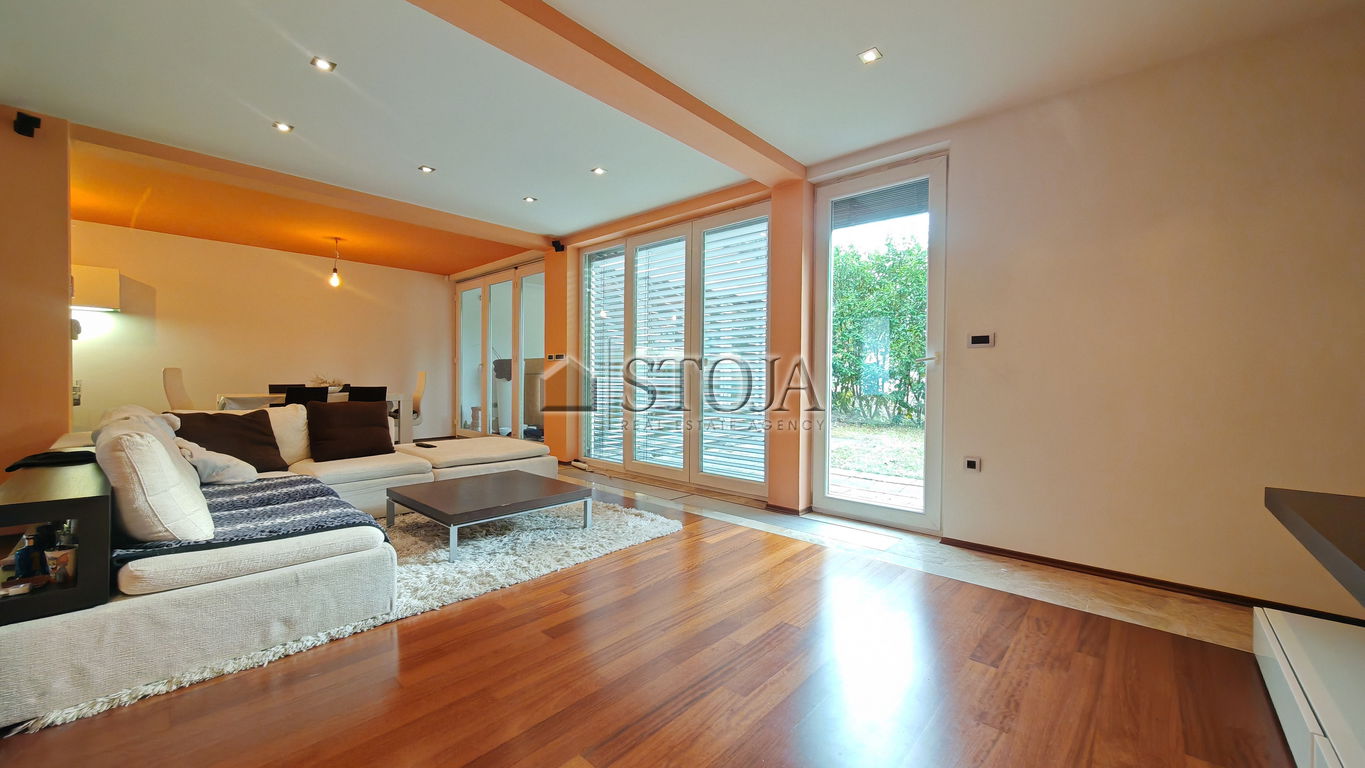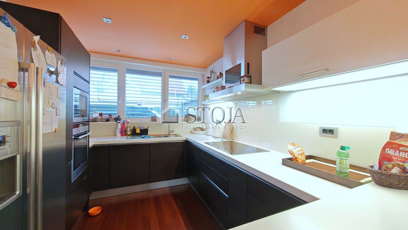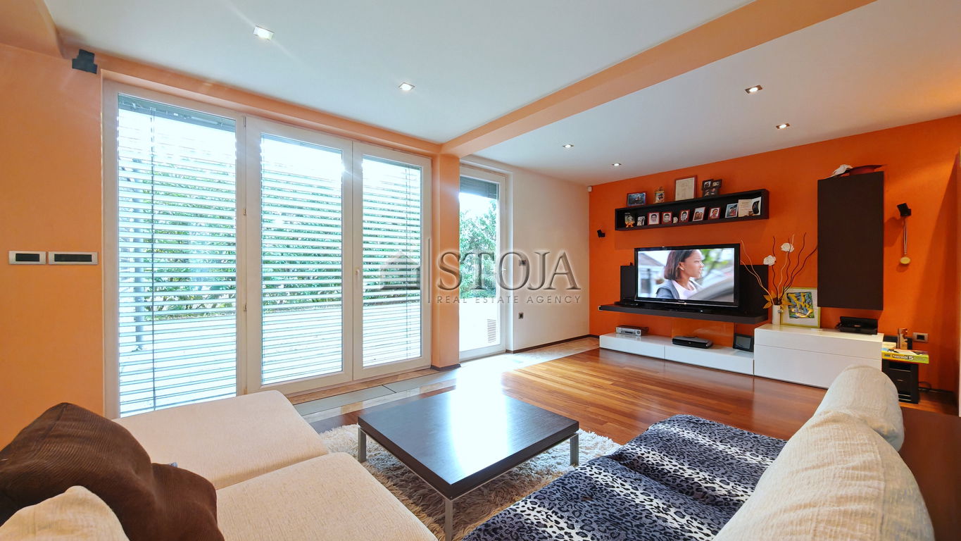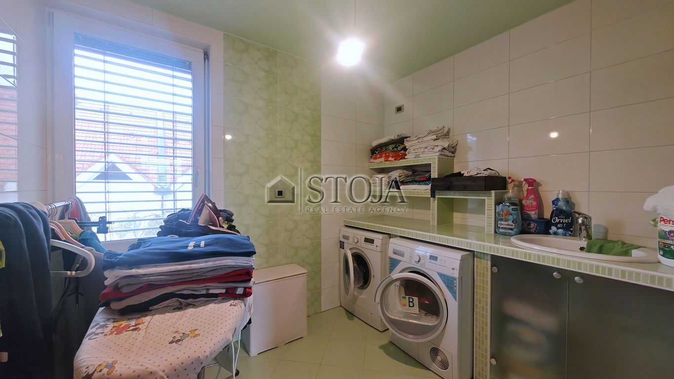 Hiša se ponaša s svetlimi prostori, klimatizacijo, talnim ogrevanjem v kombinaciji z radiatorji, kvalitetnimi talnimi oblogami (tropski in bambusov parket ter granit), video domofonom, itd.