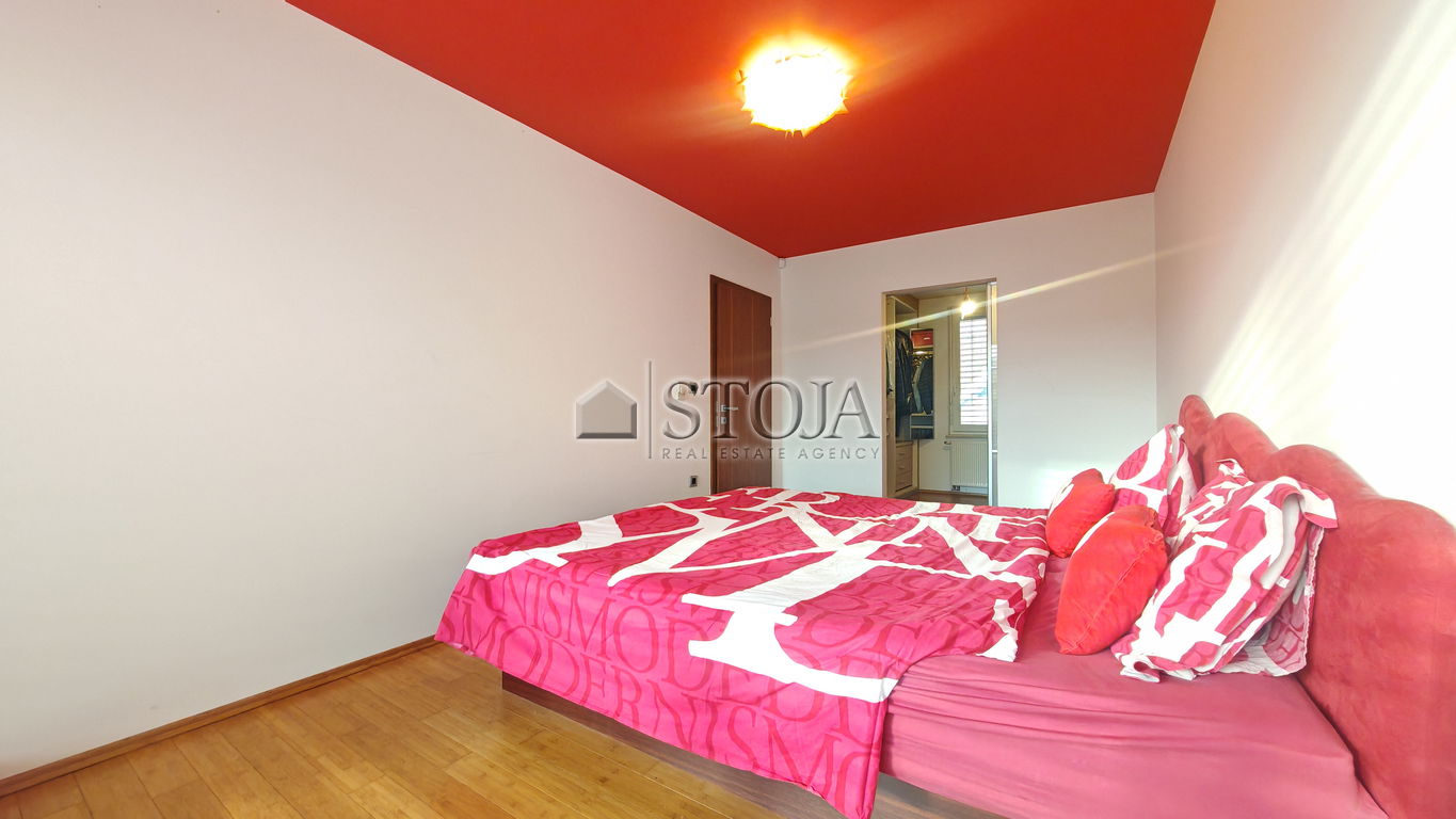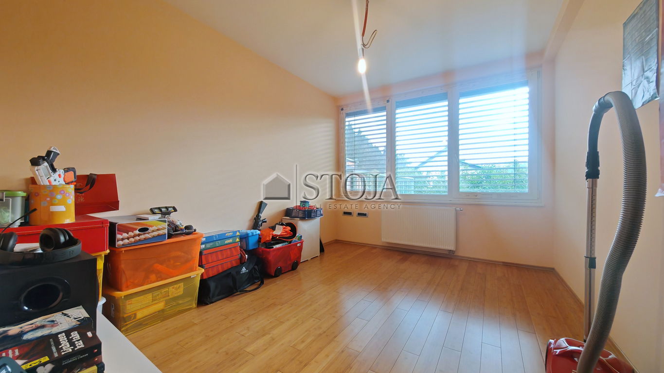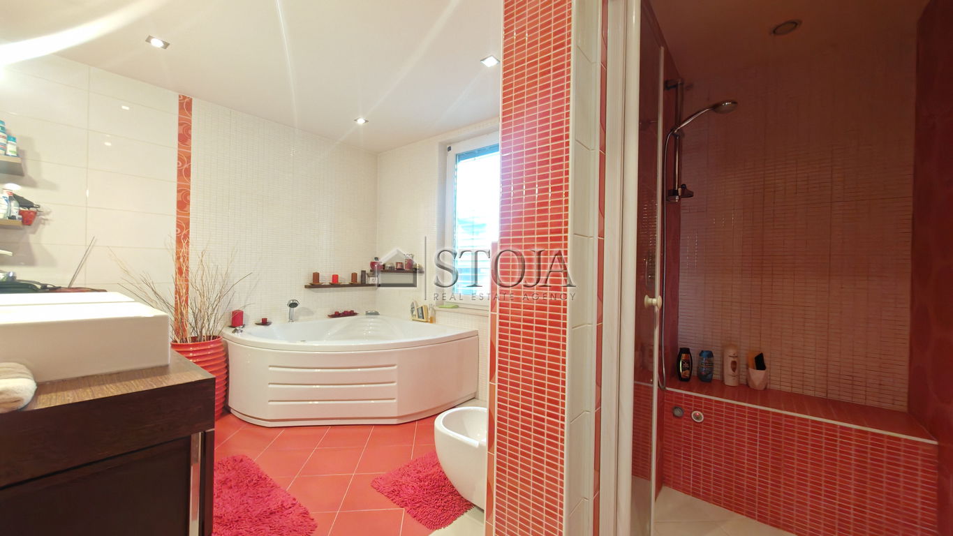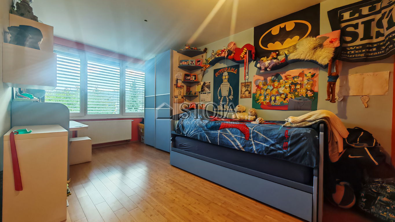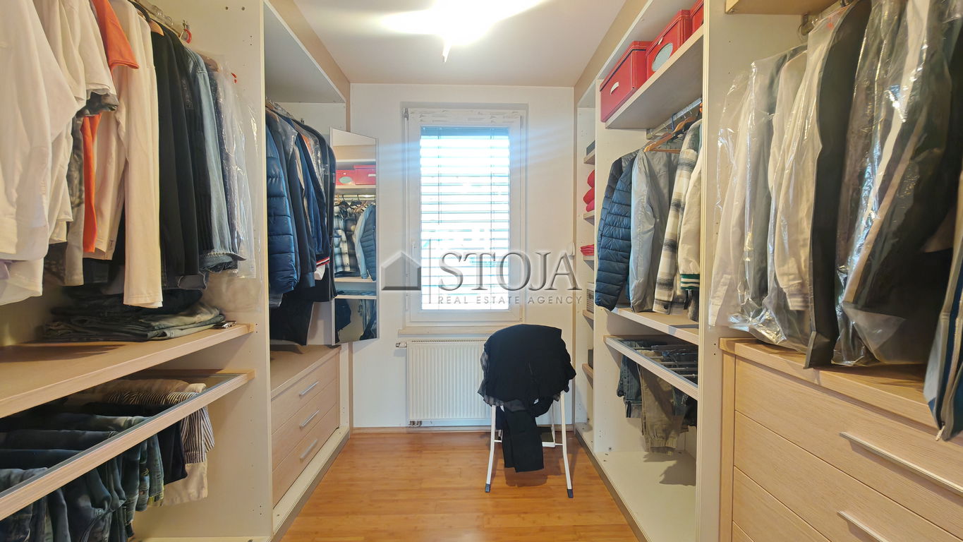 V nadstropju se nahajajo 3 prostorne mladinske sobe, utiliti ter velika kopalnica z masažno kadjo in tušem s Turško savno. V nadaljevanju se nahaja še glavna spalnica z izhodom na teraso in walk-in garderobo.