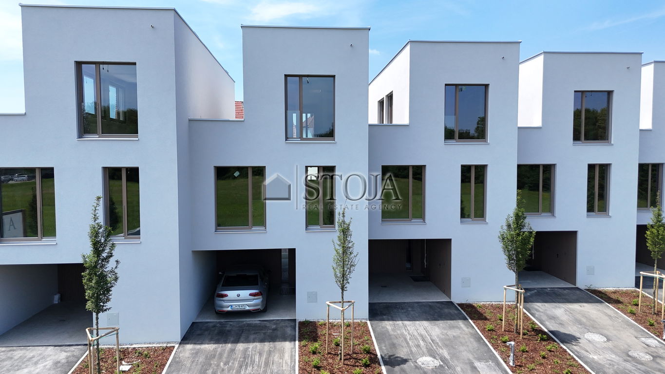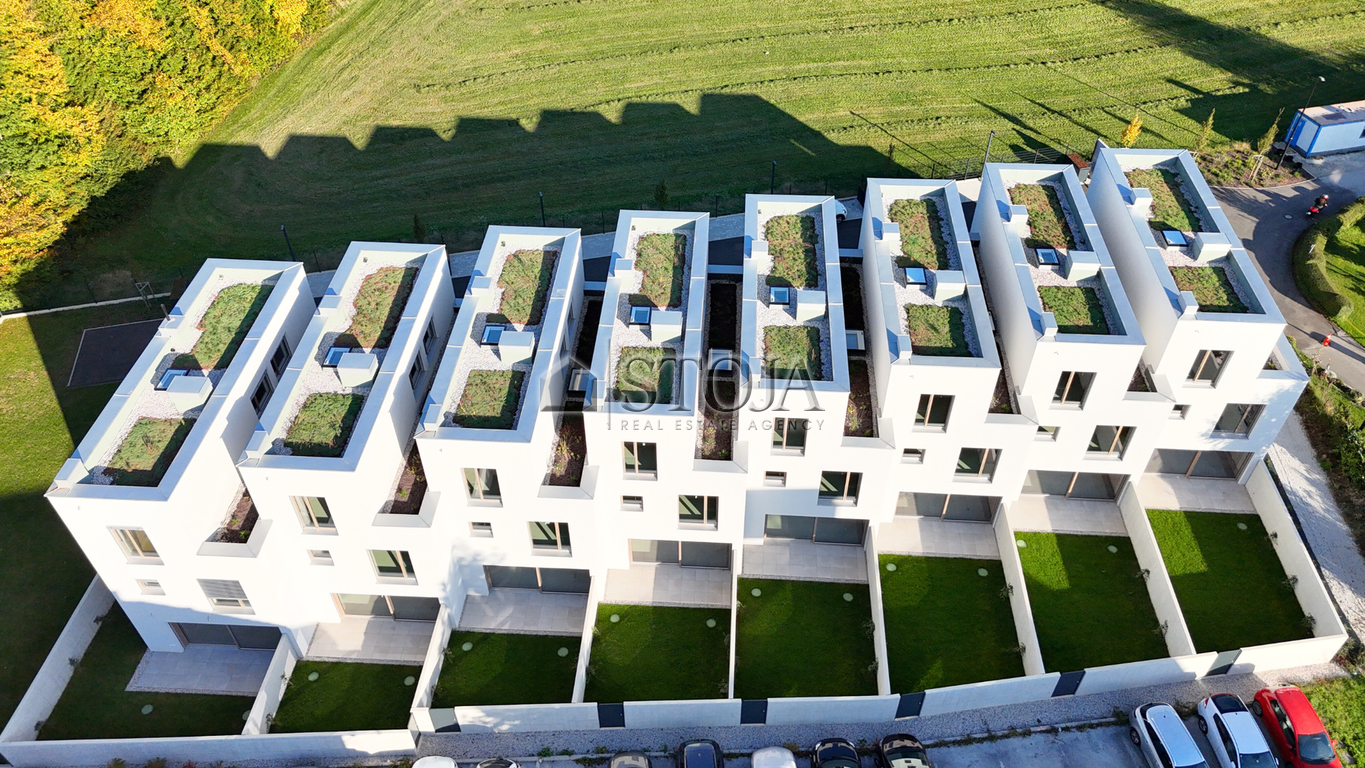 Sodobna arhitekturna zasnova vse prednosti lokacije prevede v sanjski dom, ki nudi visoko udobje in veliko mero zasebnosti in v treh etažah omogoča izvedbo prostorov v skladu s potrebam in željam uporabnika (možna ureditev tudi do 5 spalnic). Pripravite prijateljem nepozabno druženje v prostornem bivalnem prostoru s kaminom ali jih povabite v zasebni atrij, skrit pred zunanjimi pogledi, ter jih razvajajte z gurmanskimi jedmi, ki jih pripravite v sodobni kuhinji, medtem ko se otroci brezskrbno zabavajo na galeriji ali na ograjeni ulici z nadzorovanim dostopom in obilico zelenja. Estetika in trajnost hiš je zagotovljena z brezčasno kombinacijo naravnih materialov. Leseno stavbno pohištvo in fasadne obloge v kombinaciji s fasadnim ometom, prispevajo k estetskim kontrastom, hkrati pa ozelenitev okolice in ravnih streh z živimi barvami, ter ustvarjanjem igre svetlobe in senc dodatno obogati poglede, ki bodo navduševali tudi prihodnje generacije.