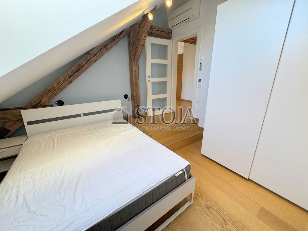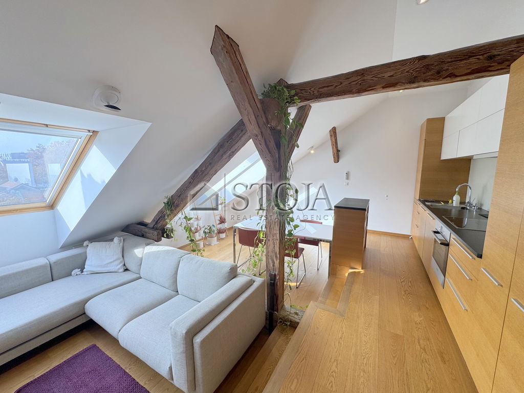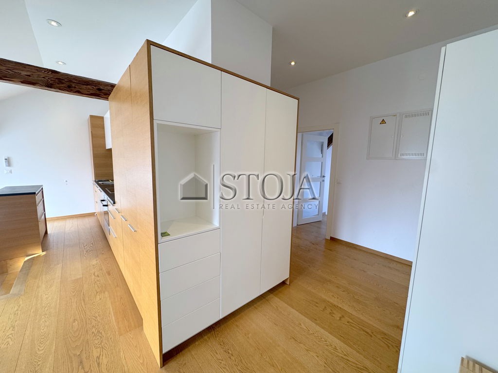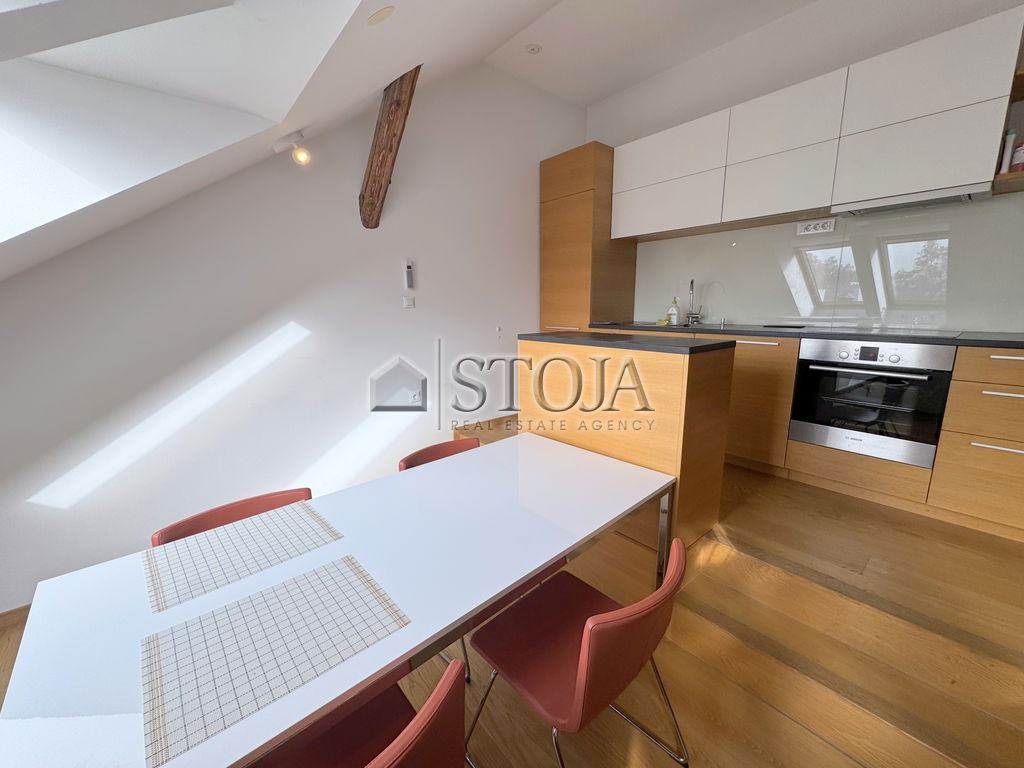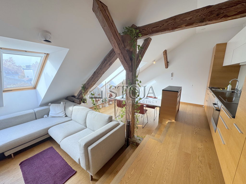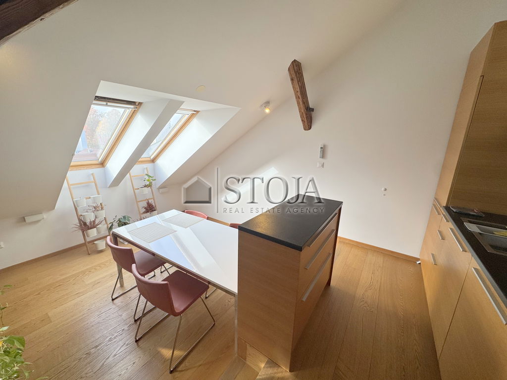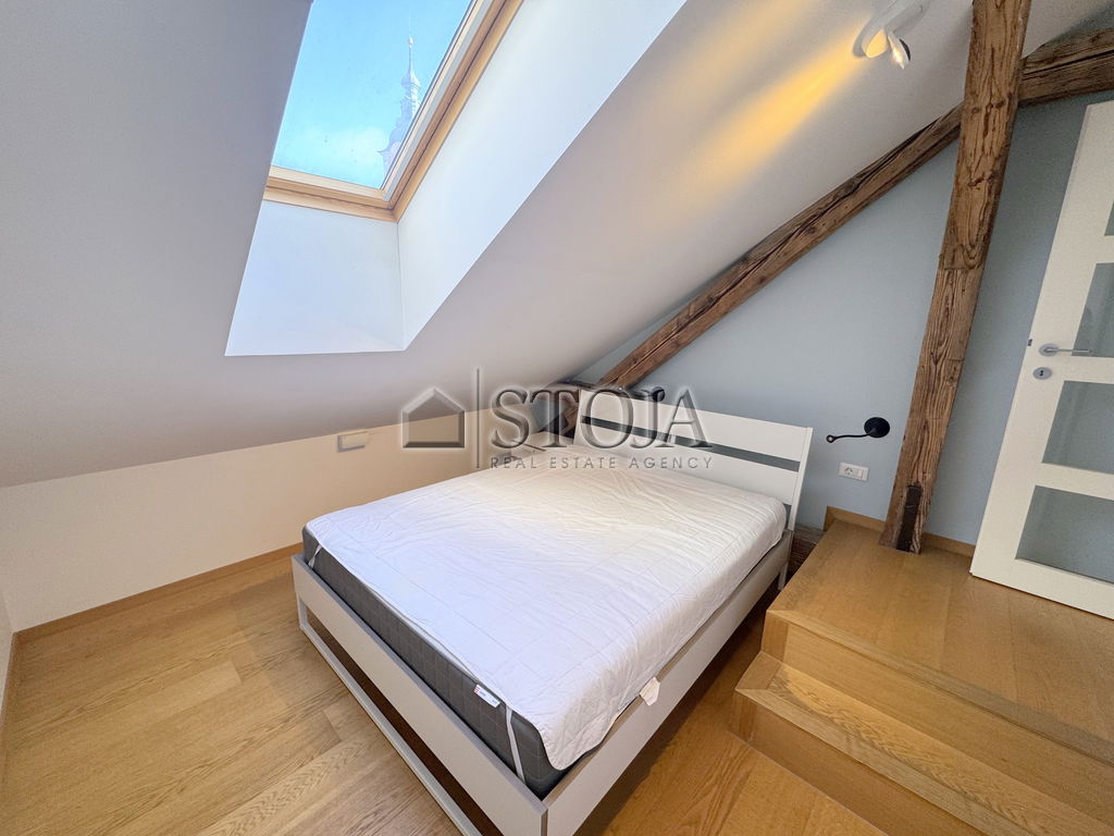 V čudoviti meščanski stavbi z dvigalom, v samem središču Stare Ljubljane, oddajamo popolnoma opremljeno, svetlo in prostorno mansardno 2-sobno stanovanje.